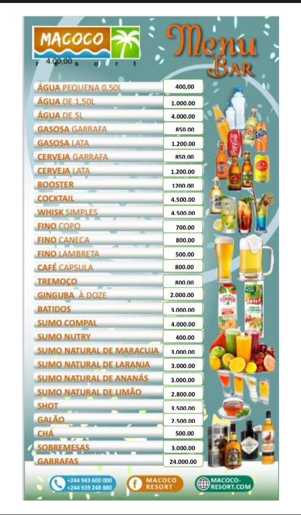 Não permitimos a entrada de bebidas no nosso espaço, o Macoco Resort tem disponível a venda bebidas no seu resturante/bar.